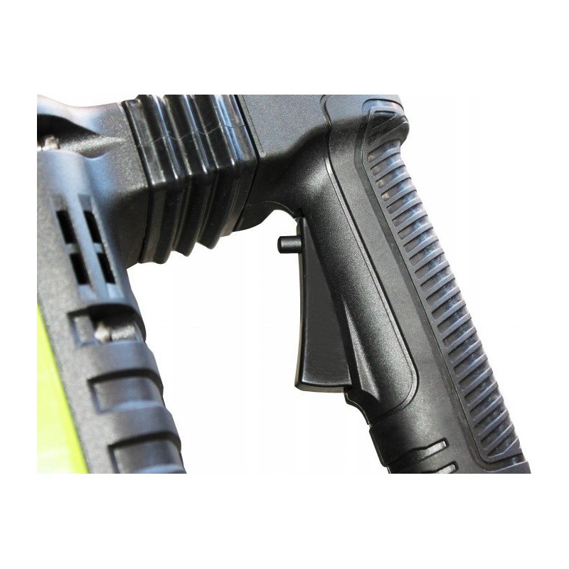 • Die HEX-Halterung (Sechskant) gewährleistet höchste Festigkeit der Schlagwerkzeuge. Eine sichere Befestigung garantiert die im Griff integrierte Bolzenverriegelung, was angesichts der hohen Schlagkraft des Hammers von entscheidender Bedeutung ist.