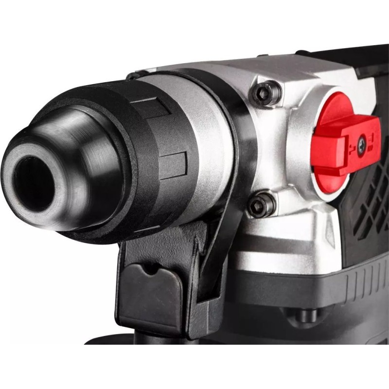 Das Werkzeug zeichnet sich durch eine maximale Schlagfrequenz bei Nenndrehzahl von 3850 Umdrehungen pro Minute sowie 980 Umdrehungen pro Minute beim Bohren aus. Sein Hauptgriff verfügt über ein Zweipunkt-Antivibrationssystem, das den Hammer stabilisiert, sowie über rutschfestes Material, das einen sicheren und festen Halt gewährleistet. Das zusätzlich mit einer Magnesiumlegierung verstärkte Gehäuse und der Zweifinger-Schalter tragen zur Sicherheit bei der Verwendung des Hammers bei.