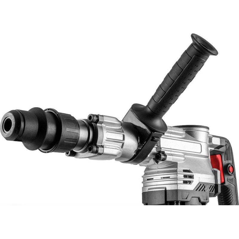 Er verfügt über eine Meißelfunktion und einen Meißel-Indexiermodus. Er ist mit dem SDS-Max-System ausgestattet, das sich durch die Bearbeitung harter Materialien auszeichnet. Der Hammer verfügt über ein 4 Meter langes Netzkabel. Er wird in einem praktischen Koffer mit Zubehörset angeboten: Meißel und Spindelfett. Ein hervorragendes Gerät der Marke Graphite für Profis.