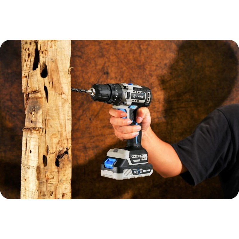 Der Bohrschrauber DEKO DKBL20ID01-B10 ist ein äußerst nützliches Gerät bei Renovierungsarbeiten im Haushalt sowie bei der Arbeit in der Werkstatt. Mit seiner Hilfe lassen sich Schrauben unterschiedlicher Größe sehr schnell und effizient eindrehen. Sie eignet sich hervorragend zum Zusammen- und Auseinanderbauen verschiedener Möbelstücke, zum Eindrehen von Schrauben in Holz oder zur Montage von abgehängten Decken. Der Schlagbohrmodus ist beim Bohren in verschiedenen Wandarten nützlich.