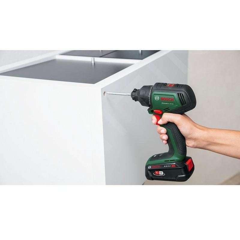 Der Bosch-Schrauber AdvancedDrill 18V-80 Quicksnap ist Teil des 18V POWER FOR ALL-Systems, was bedeutet, dass ein Akku mit anderen Werkzeugen derselben Serie verwendet werden kann. Dies ist eine praktische Lösung, die Platz und Geld spart.