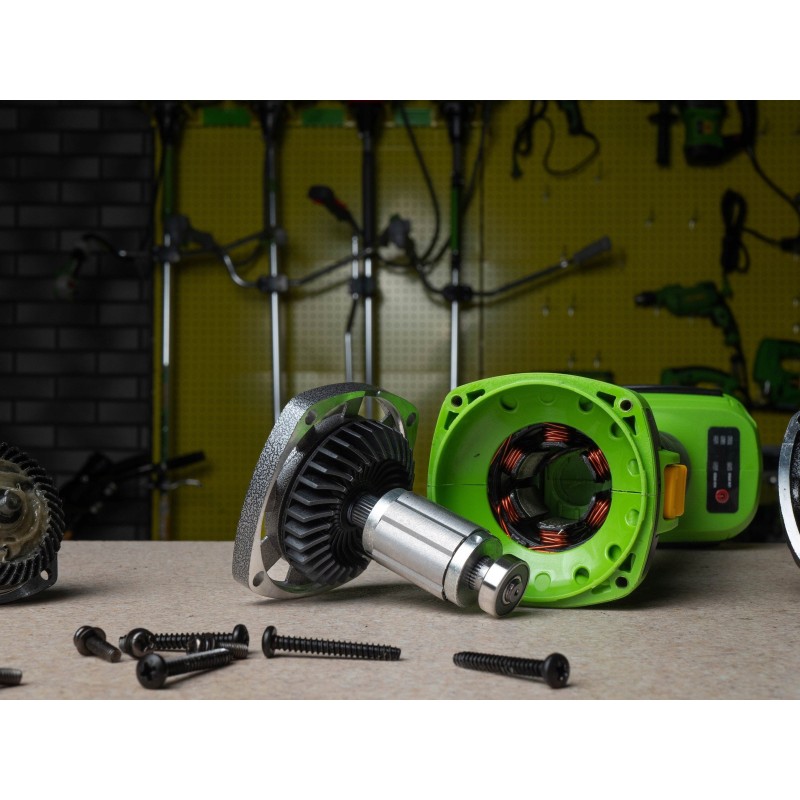 Das Gerät verfügt über ein Zweiganggetriebe, das die Auswahl der geeigneten Drehzahl je nach auszuführender Arbeit ermöglicht. Der niedrige Gang eignet sich ideal zum Schrauben, während der hohe Gang sich hervorragend zum Bohren eignet, was eine bessere Kontrolle über das Werkzeug gewährleistet.