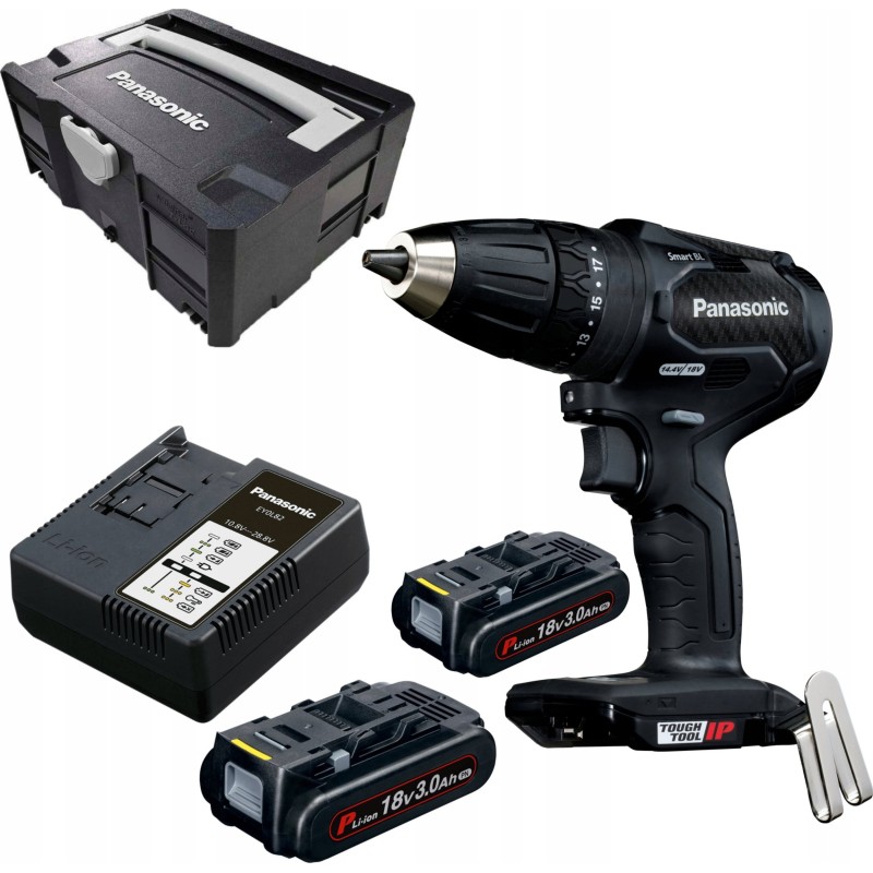 Panasonic Bohrschrauber-Set: Schlagbohrschrauber 2 x 18 V/3,0 Ah + Ladegerät, mit Koffer (kompatibel mit 14,4 V)