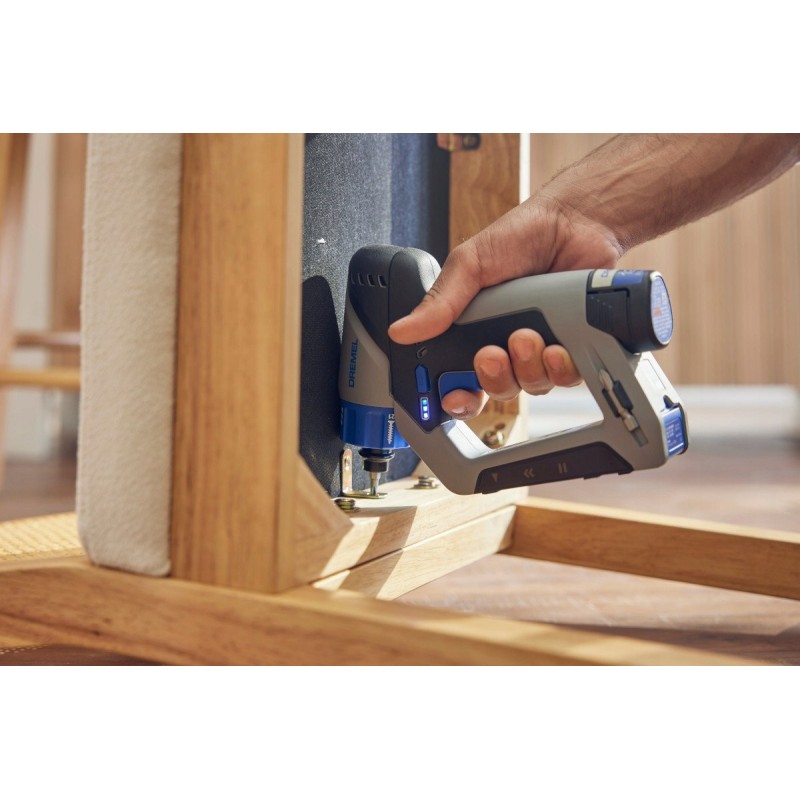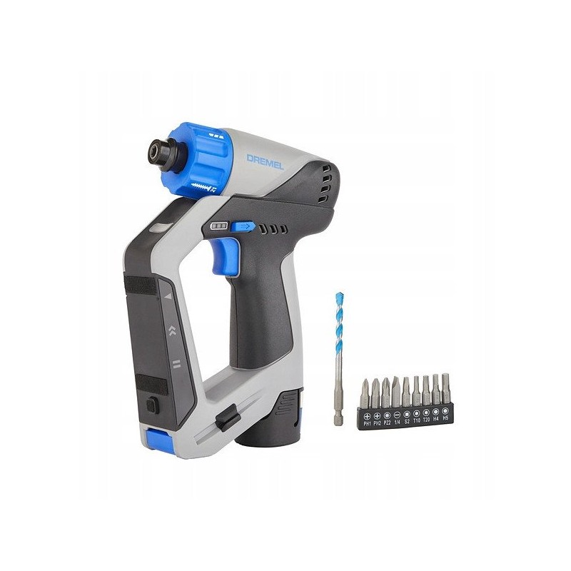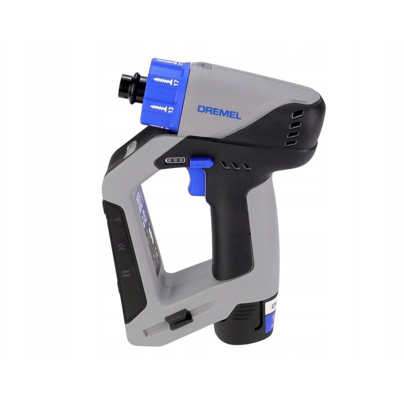 Ausgestattet mit einem bürstenlosen Gleichstrommotor bietet der Dremel-Schrauber hervorragende Leistung und Zuverlässigkeit. Der Lithium-Ionen-Akku mit einer Kapazität von 2,0 Ah garantiert lang anhaltenden Betrieb ohne Memory-Effekt, was dieses Werkzeug äußerst praktisch macht.