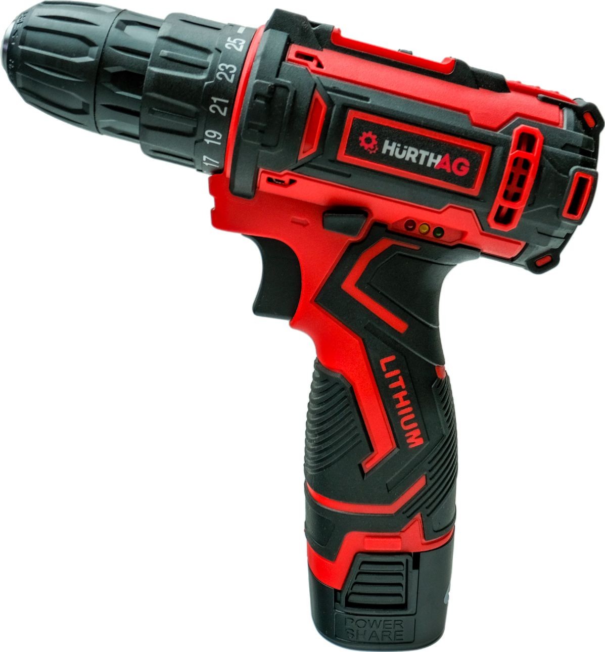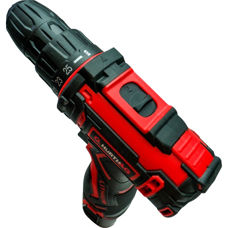 Leistungsstarker und vielseitiger 18-V-Akku-Bohrschrauber der Marke HurthAG, ausgestattet mit einem robusten Zweistufen-Planetengetriebe aus Stahl. Er eignet sich hervorragend zum Bohren in Metall, Holz und Kunststoffen sowie zum Eindrehen aller Arten von Schrauben und Bolzen.