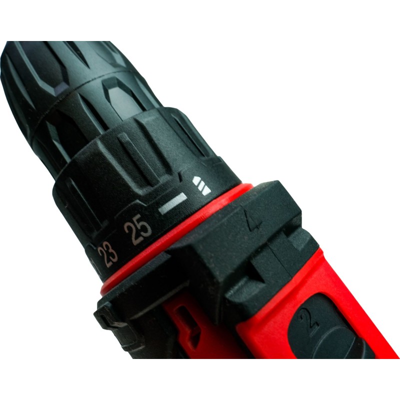 Der Schrauber verfügt über 25 Stufen zur Einstellung der Drehmomentkraft sowie einen separaten Vorbohrmodus, der die Kupplung sperrt.