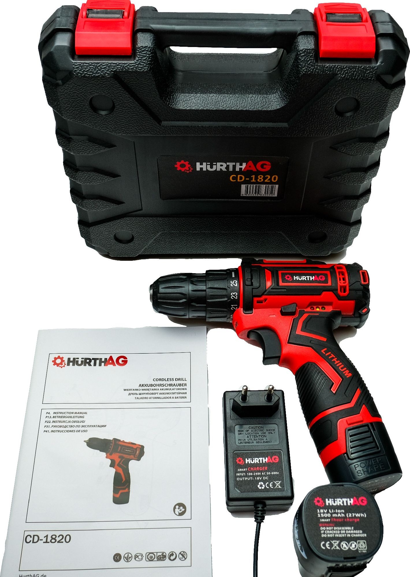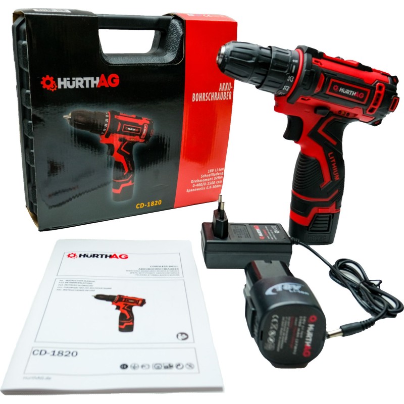 AKKU-BOHR-SCHRAUBER HurthAG CD-1820 10 mm 32 Nm 2x 18 V Li-Ion + Koffer