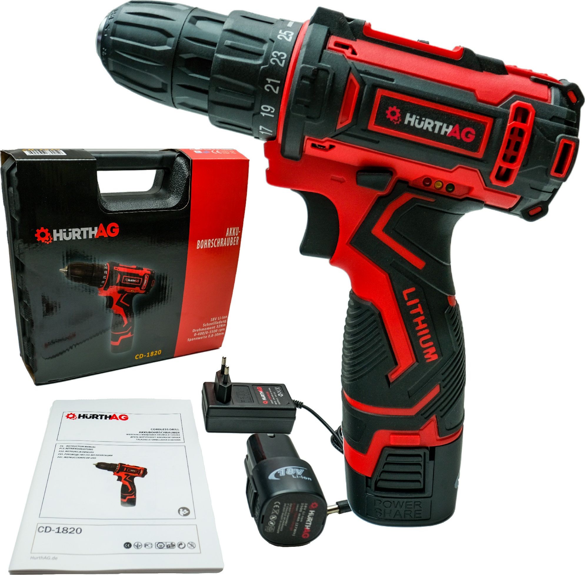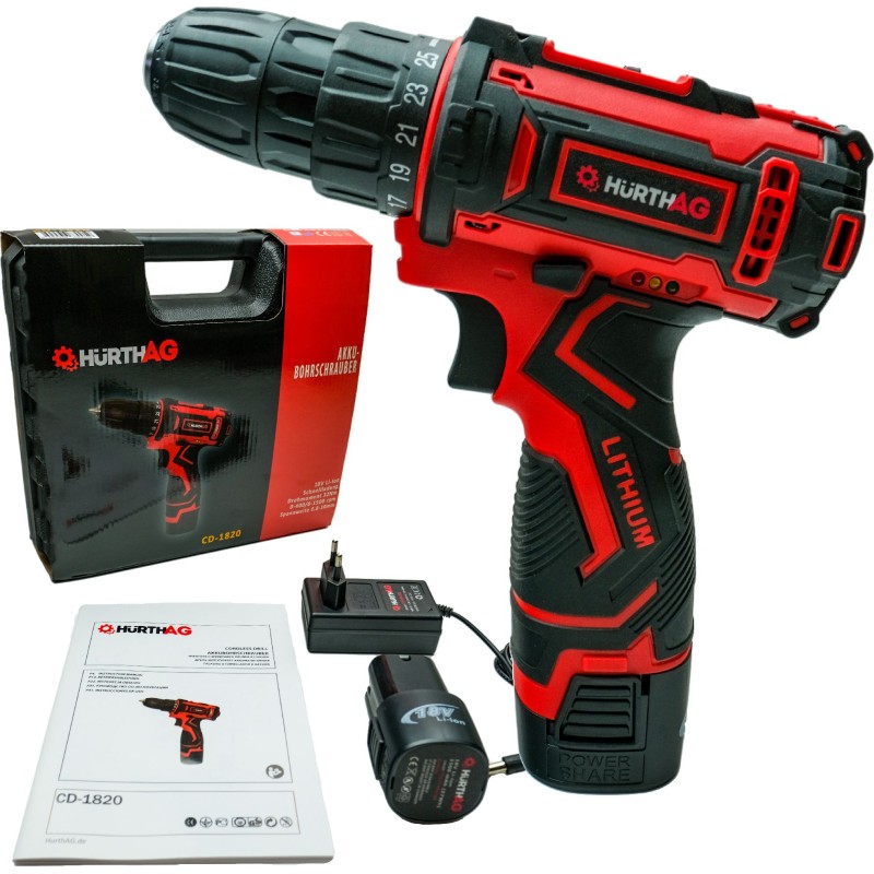 Bohrschrauber HurthAG CD-1820, 18 V, 2 Akkus à 1,5 Ah