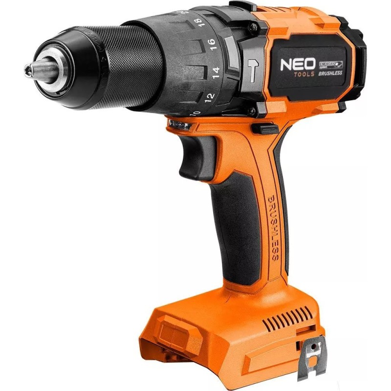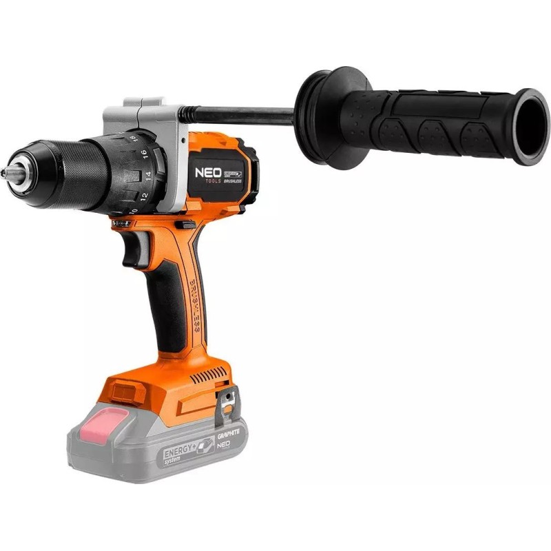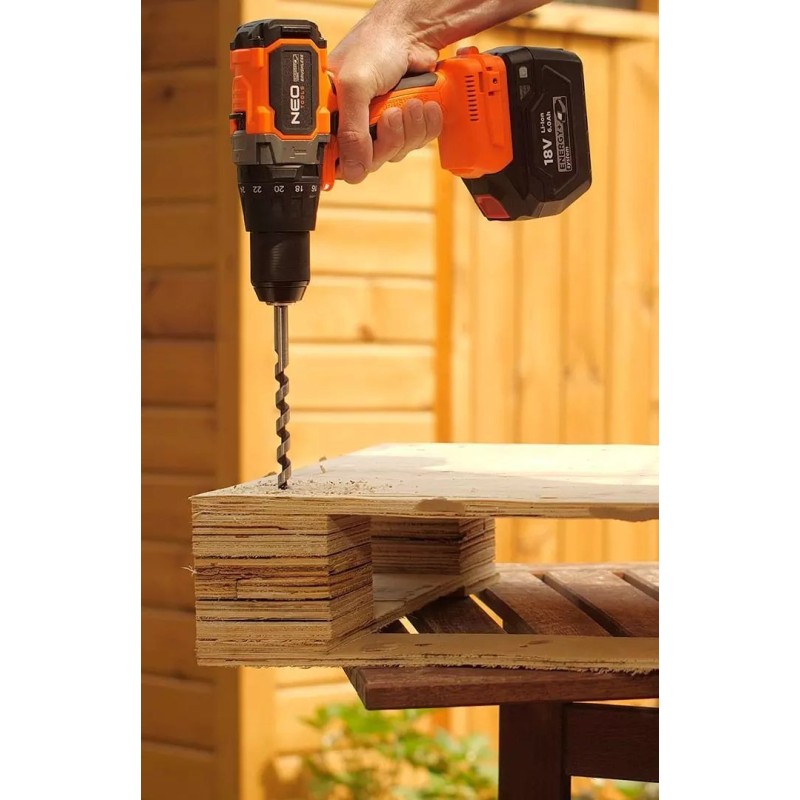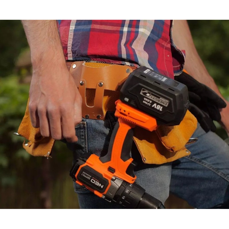 Das Gerät gehört zum Energy+-System, wodurch die Akkus zwischen den Elektrowerkzeugen von Neo Tools und Graphite austauschbar sind. Es ist kompatibel mit 18-V-Lithium-Ionen-Akkus mit einer Kapazität von 2 Ah und 4 Ah. Mit dem 2-Ah-Akku beträgt die Betriebszeit etwa 31 Minuten, während der empfohlene 4-Ah-Akku eine längere Nutzungsdauer bietet. Der selbstspannende 13-mm-Bohrfutter ermöglicht eine schnelle und einfache Montage des Zubehörs, was die Vielseitigkeit des Geräts erhöht.