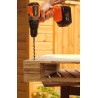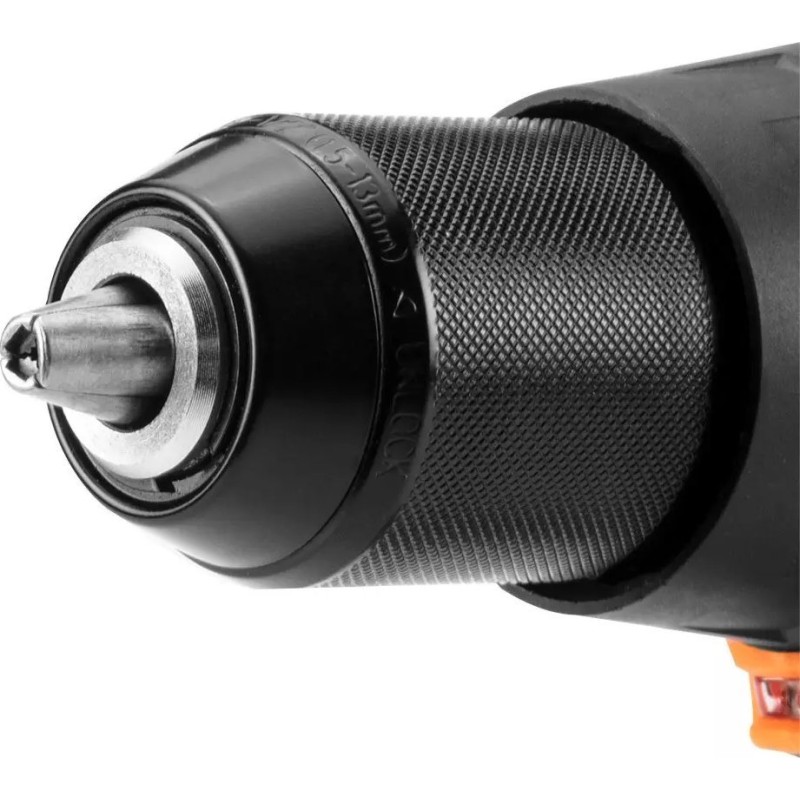 Der Bohrschrauber wurde mit Blick auf Langlebigkeit und Bedienkomfort entwickelt. Der Metallkopf erhöht die Robustheit des Werkzeugs, während die ergonomische Form mit rutschfestem Griff für sicheren Halt und Komfort bei der Arbeit unter schwierigen Bedingungen sorgt. Ein zusätzlicher Griff erleichtert die Kontrolle über das Werkzeug, was besonders bei schwereren Aufgaben nützlich ist. Die integrierte LED-Leuchte beleuchtet automatisch den Arbeitsbereich und ermöglicht präzises Bohren und Schrauben auch an schlecht beleuchteten Stellen.