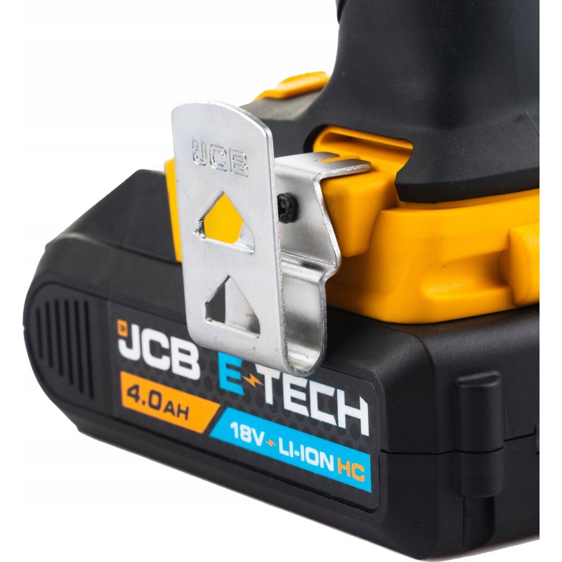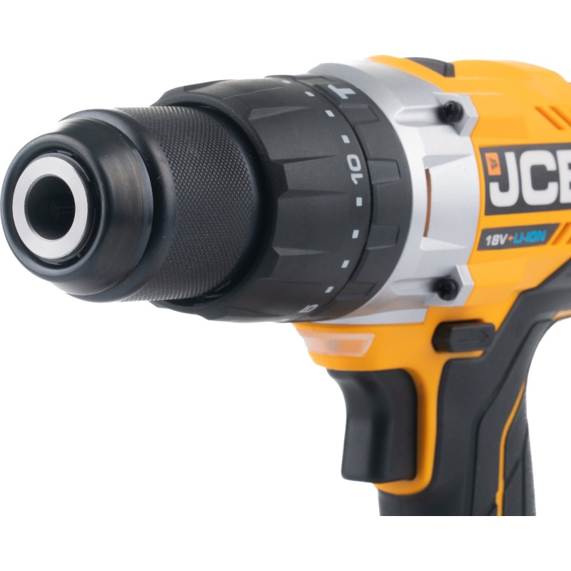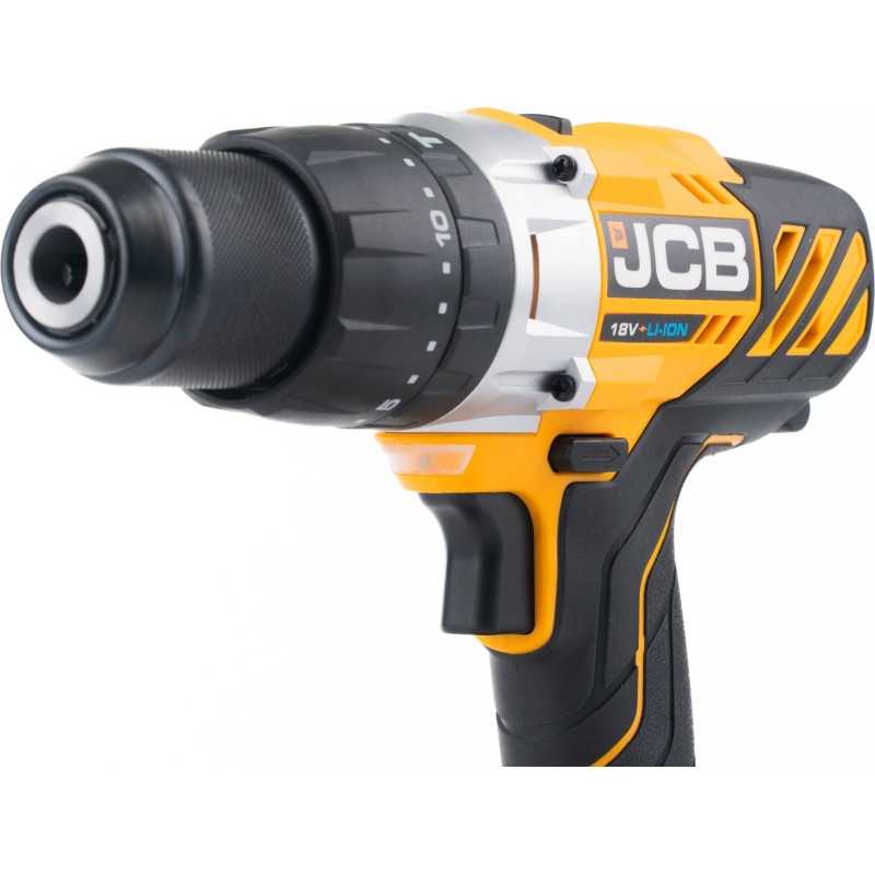 Der JCB-Bohrschrauber ist mit einer leistungsstarken LED-Leuchte ausgestattet, die den Arbeitsbereich beleuchtet und so die Präzision der ausgeführten Arbeiten erhöht. Dadurch kann man auch in schlecht beleuchteten Räumen mit vollem Komfort arbeiten.
