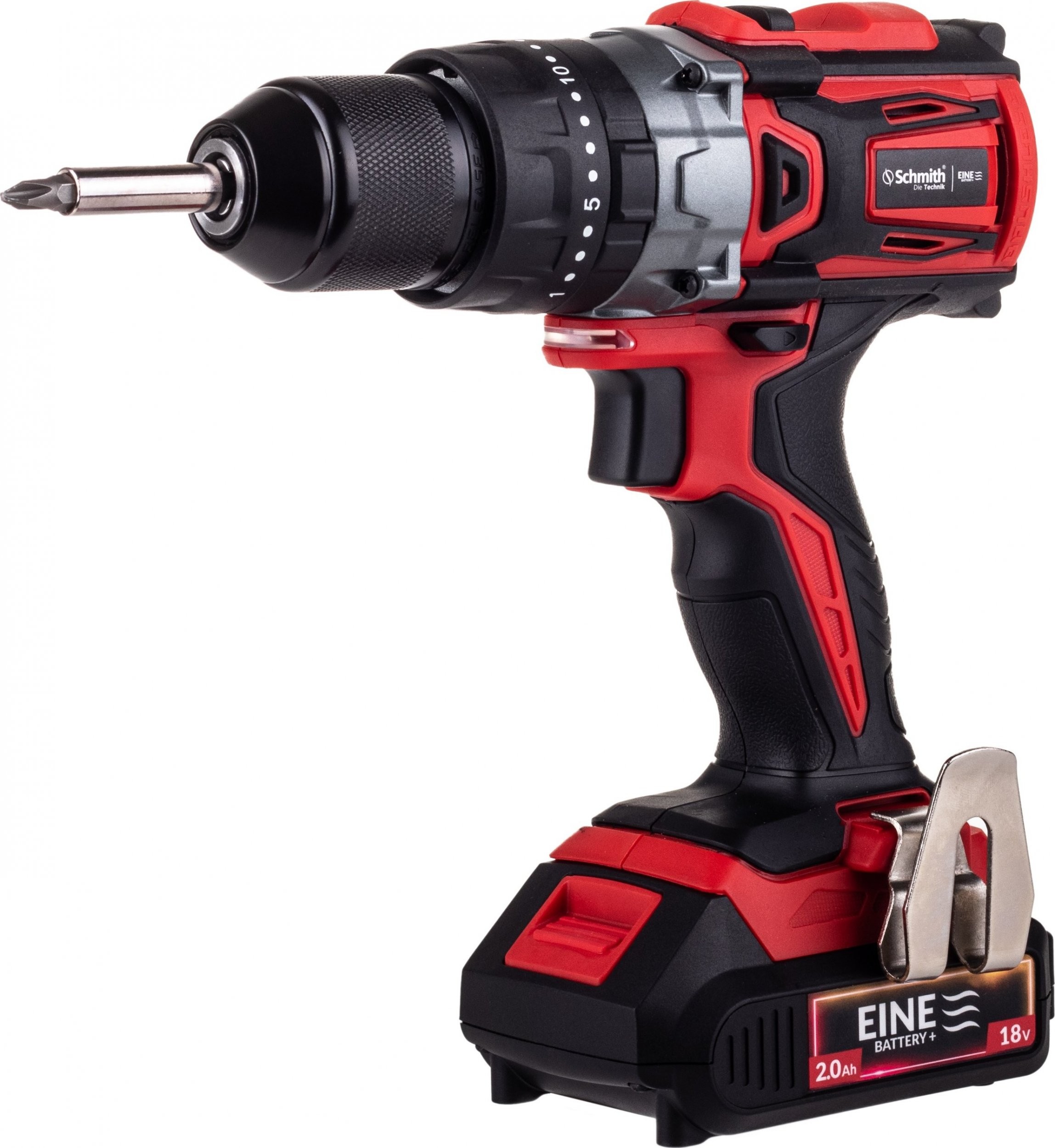 Der Schlagbohrschrauber ist eine Neuheit im Angebot von Schmith aus der Serie EINE BATTERY+. Er richtet sich sowohl an Heimwerker als auch an Profis und ist sowohl bei Montage- als auch bei Renovierungsarbeiten hilfreich. Der moderne bürstenlose Motor mit bis zu 50 Nm sorgt für ein hohes Drehmoment bei minimalem Batterieverbrauch; diese Motoren zeichnen sich durch eine deutlich längere Lebensdauer aus als herkömmliche Bürstenmotoren.