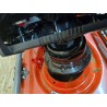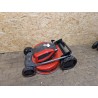 Der Rasenmäher ist selbstfahrend und mit großen Hinterrädern ausgestattet, was das Manövrieren in unwegsamem Gelände erleichtert. Der ergonomische, höhenverstellbare Griff und die klappbare Konstruktion machen die Lagerung und den Transport des Rasenmähers äußerst einfach und bequem.