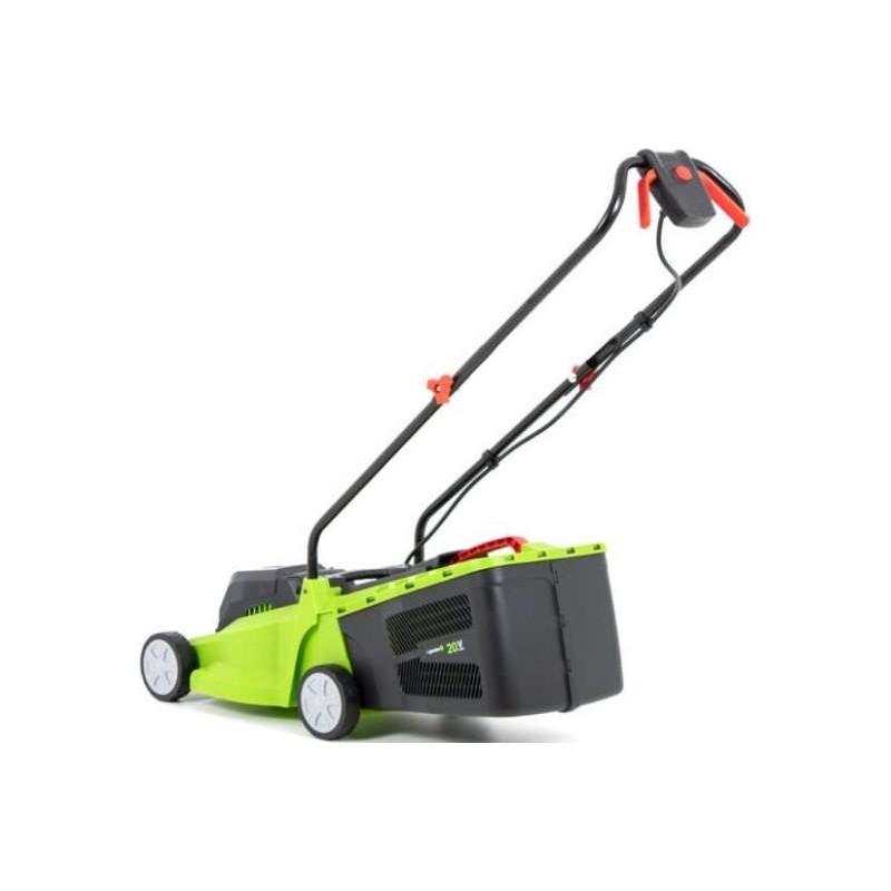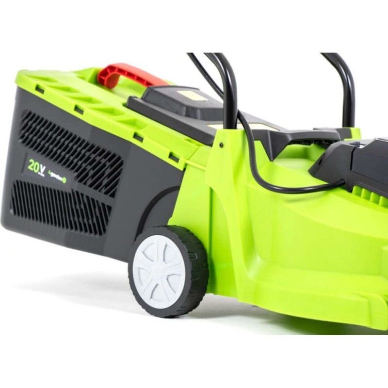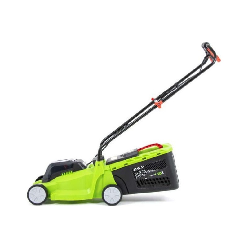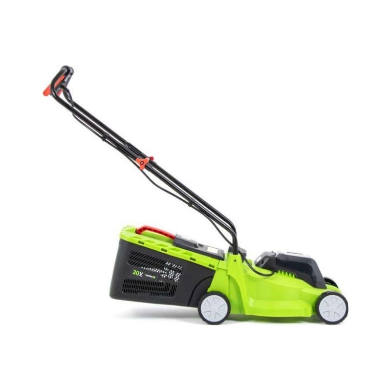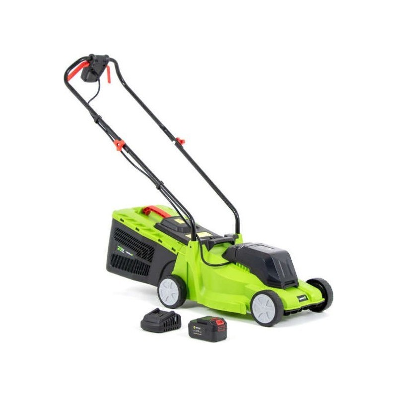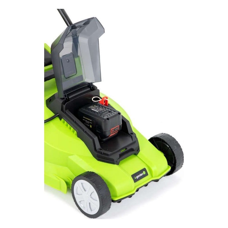 Akkusystem: 4GARDEN 20 V / 2x20 V. Motortyp: elektrisch, mit Bürsten. Spannung: 20 V. Akku(s) im Lieferumfang enthalten: ja. Akkutyp: Lithium-Ionen. Akkukapazität: 4,0 Ah. Anzahl der Akkus im Lieferumfang: 1 Stück. Ladegerät im Lieferumfang: ja. Schnittbreite: 32 cm. Antriebsart: Handantrieb. Funktionen: Heckauswurf, Auffangbehälter (2-in-1). Schnitthöhenverstellung: 3-stufig. Art der Höhenverstellung: jedes Rad separat. Minimale Schnitthöhe: 25 mm. Maximale Schnitthöhe: 55 mm. Gehäuse: Kunststoff. Fassungsvermögen des Grasfangkorbs: 25 l. Art des Grasfangkorbs: Kunststoff. Kugellagerräder: nein. Füllstandsanzeige für den Grasfangkorb: nein.
