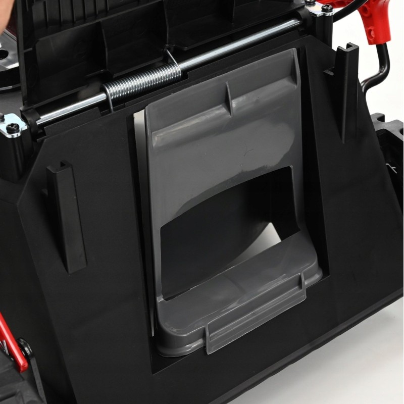 Der Rasenmäher ist mit einem geräumigen Grasfangkorb mit einem Fassungsvermögen von 40 Litern ausgestattet, was die Arbeitseffizienz erhöht und die Häufigkeit des Entleerens verringert. So können Sie sich auf das Mähen konzentrieren und müssen keine Pausen zum Entleeren des Grasfangkorbs einlegen.