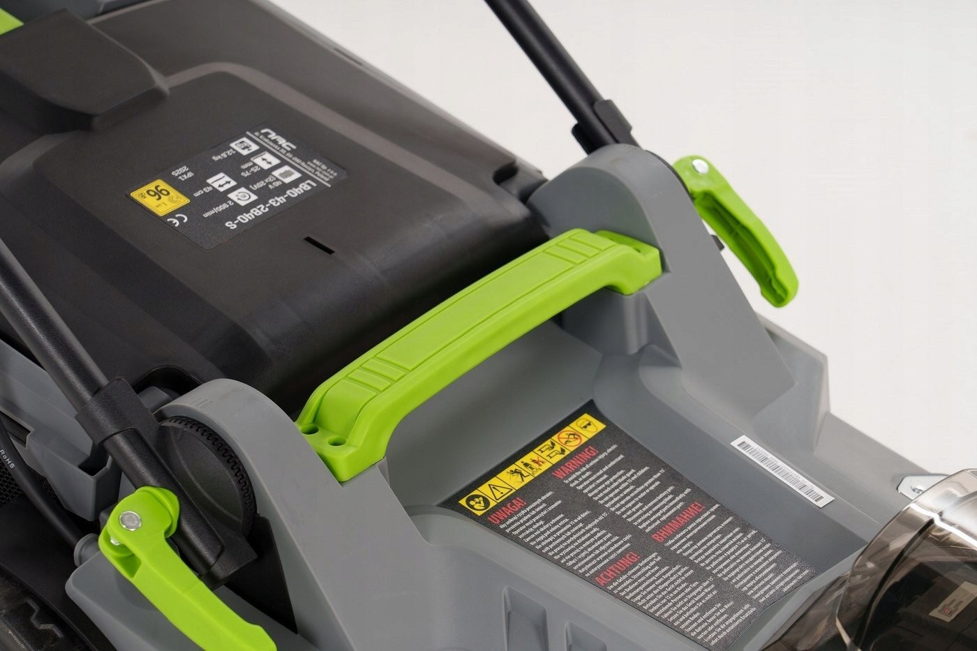 Der Rasenmäher ist mit einem geräumigen Grasfangkorb mit einem Fassungsvermögen von 35 Litern ausgestattet, was längeres Mähen ohne häufiges Entleeren ermöglicht. Zusätzlich verfügt der Korb über einen Staubschutzdeckel mit Füllstandsanzeige, was den Bedienkomfort erhöht.