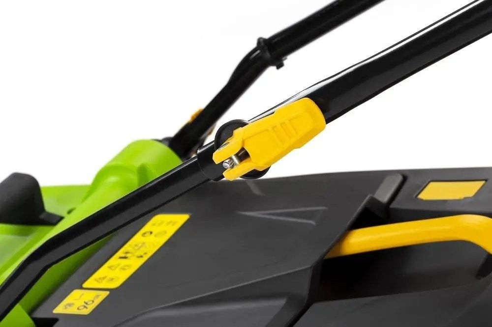 Der hervorragend verarbeitete Benzinrasenmäher Fieldmann FZR70435-0 2 x 20 V verfügt über einen Sicherheitsschalter, der ein versehentliches Einschalten des Messers verhindert, und die robuste Konstruktion aus strapazierfähigem Kunststoff garantiert eine lange Lebensdauer. Für eine perfekte Handhabung der Maschine ist der Rasenmäher mit robusten Rädern aus strapazierfähigem Kunststoff ausgestattet.