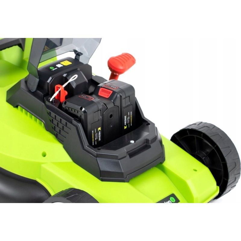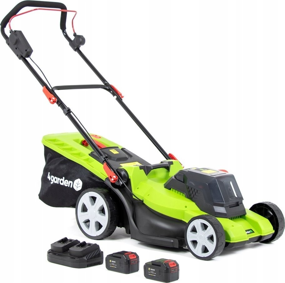 ➡️ Akku-Rasenmäher 4garden AM4422S mit 2x20-V-Motor und 4,0-Ah-Akku.
