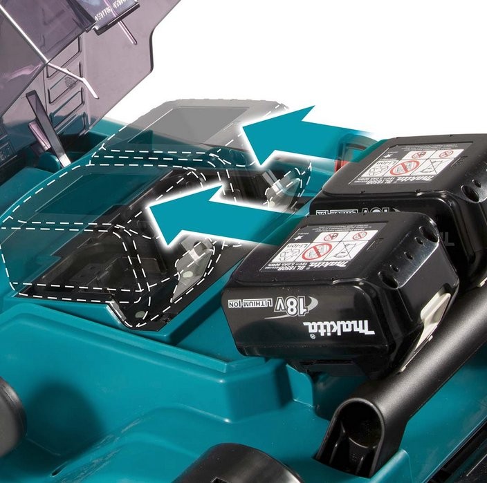 Der Rasenmäher wird von zwei 18-V-Li-Ion-Akkus mit einer Kapazität von 5 Ah angetrieben, was für einen langen Betriebsdauer und hohe Leistung sorgt. So können Nutzer effizientes Mähen genießen, ohne sich um Stromkabel oder Kraftstoff sorgen zu müssen.