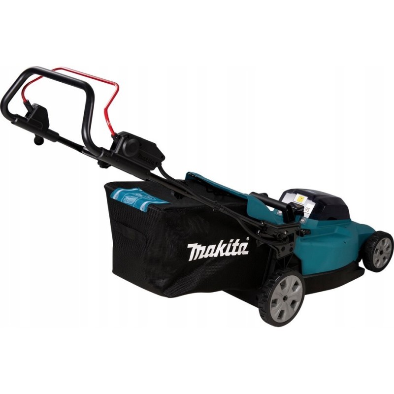 Der Akku-Rasenmäher MAKITA DLM480 mit einem 62-Liter-Grasfangkorb und einer Schnittbreite von 48 cm ist ein umweltfreundlicher LXT®-Akku-Rasenmäher mit Funktionen zum Mähen, Auffangen und Mulchen. Der Schnitthöhenbereich liegt zwischen 20 und 100 mm. Er verfügt über breite Reifen, die das Führen des Mähers auf schlammigem oder hügeligem Gelände erleichtern. Er ist für Gärten und Hausumgebungen konzipiert. Mit einer einzigen Ladung der beiden BL1860B-Akkus lässt sich eine Gartenfläche von bis zu 800 m² mähen. Er verfügt über eine 10-stufige, zentrale Schnitthöhenverstellung, die über einen Hebel eingestellt wird. Der Rasenmäher lässt sich leicht zusammenklappen und aufrecht lagern. Zudem zeichnet er sich durch einen niedrigen Geräuschpegel aus. Der DLM480 ist damit die beste Wahl für Wohngebiete und gleichzeitig leistungsstark genug für Arbeiten z. B. in Ferienanlagen oder anderen öffentlichen Bereichen. Das Innere des Mähers wurde für einen besseren Grasfluss neu gestaltet, um das Gras besser aufzunehmen. Lieferung ohne Akkus und Ladegerät.