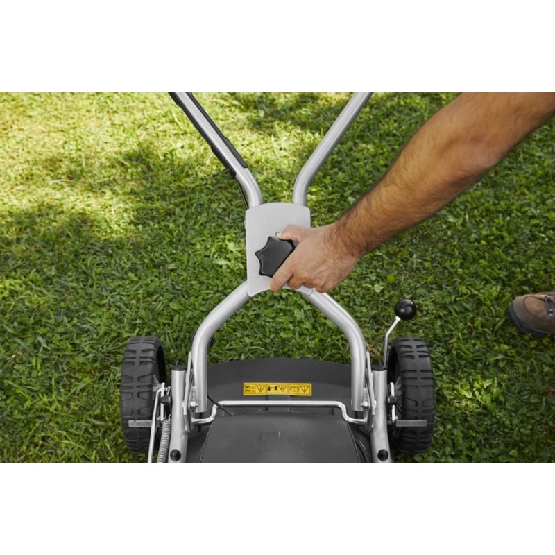 Die stabilen Vorderräder und die äußerst robusten Aluminiumräder sind stoßfest. Für schnelles Mähen deckt der Multiclip Pro 950 dank seiner großen Schnittbreite von 48 cm einen Großteil des Rasens ab. Über das benutzerfreundliche Bedienfeld mit Sparmodus und sechs verschiedenen Geschwindigkeitsstufen kannst du sofort mit der Arbeit beginnen. Sie können aus fünf verschiedenen Schnitthöhen wählen, die auf Ihren Rasen und die Jahreszeit abgestimmt sind. Und wenn Sie fertig sind, hilft Ihnen die robuste Konstruktion beim Transport des Mähers.