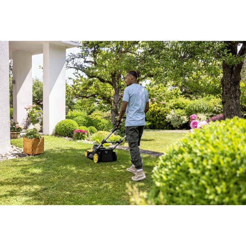 Das Kärcher LMO 5-18 Dual Battery Set ist mit der 18-V-Akku-Plattform von Kärcher kompatibel, sodass die Akkus auch in anderen Geräten der Marke verwendet werden können. Im Lieferumfang enthalten sind zwei 18-V/5,0-Ah-Akkus, ein Schnellladegerät sowie ein Mulchset. Dank des optimalen Luftstroms füllt sich der Grasfangkorb zu 95 %, was Arbeitsunterbrechungen minimiert. Dies ist die ideale Lösung für alle, die einen leistungsstarken und umweltfreundlichen Rasenmäher für große Rasenflächen suchen.
