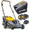 Der Rasenmäher ist mit einem Lithium-Ionen-Akku mit einer Spannung von 20 V und einer Kapazität von 4 Ah ausgestattet, was einen lang anhaltenden Betrieb gewährleistet. Die Ladezeit beträgt nur 2 Stunden, sodass Sie schnell wieder mit dem Mähen beginnen können.