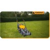 Der Rasenmäher zeichnet sich durch eine robuste Konstruktion mit verstärktem Fahrwerk aus, was ihm eine lange Lebensdauer verleiht. Darüber hinaus erhöht das Fehlen von Stromkabeln die Mobilität und den Bedienkomfort.