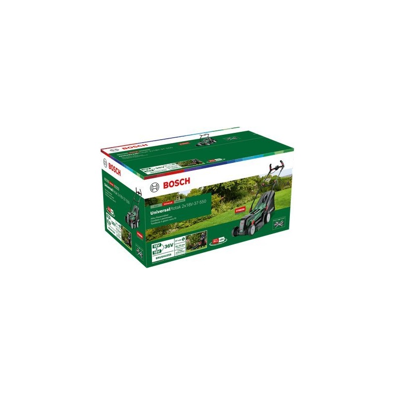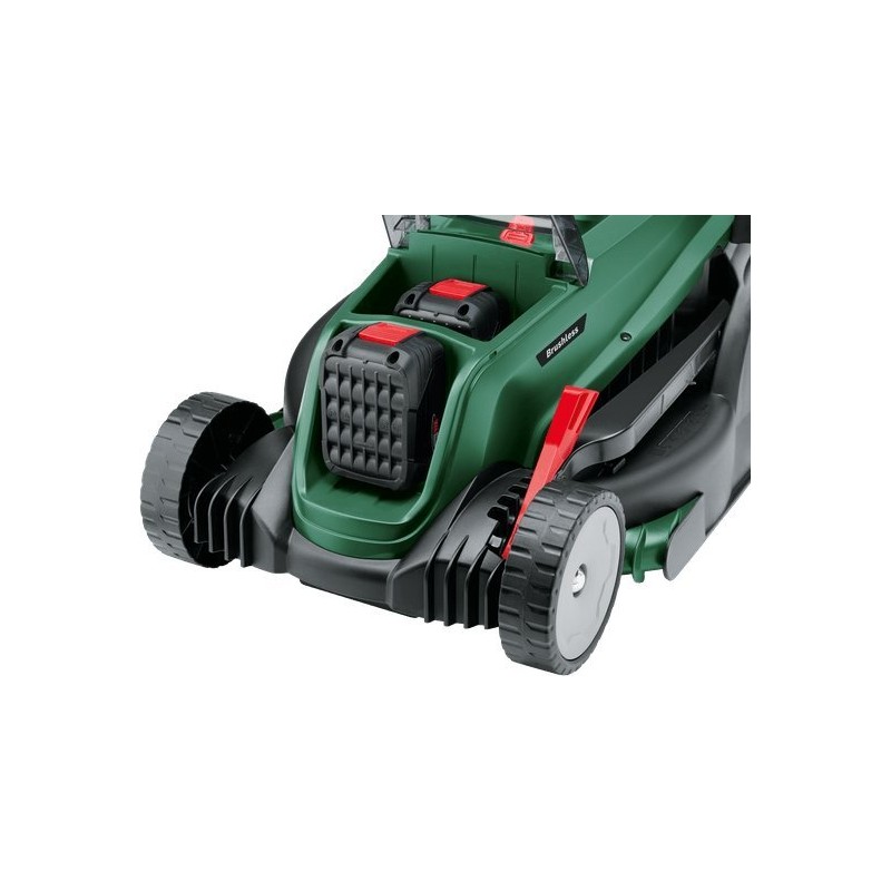 • Leistungsstarkes Mähen dank bürstenlosem Motor und 36-V-Elektronik (2 x 18-V-Akkus)