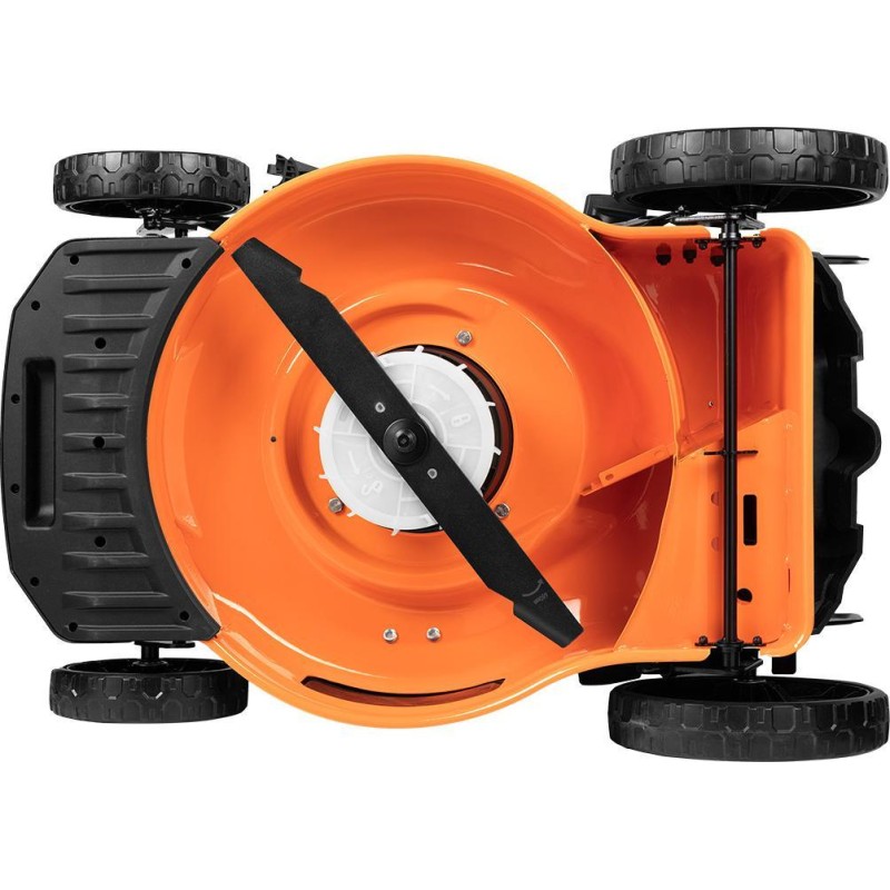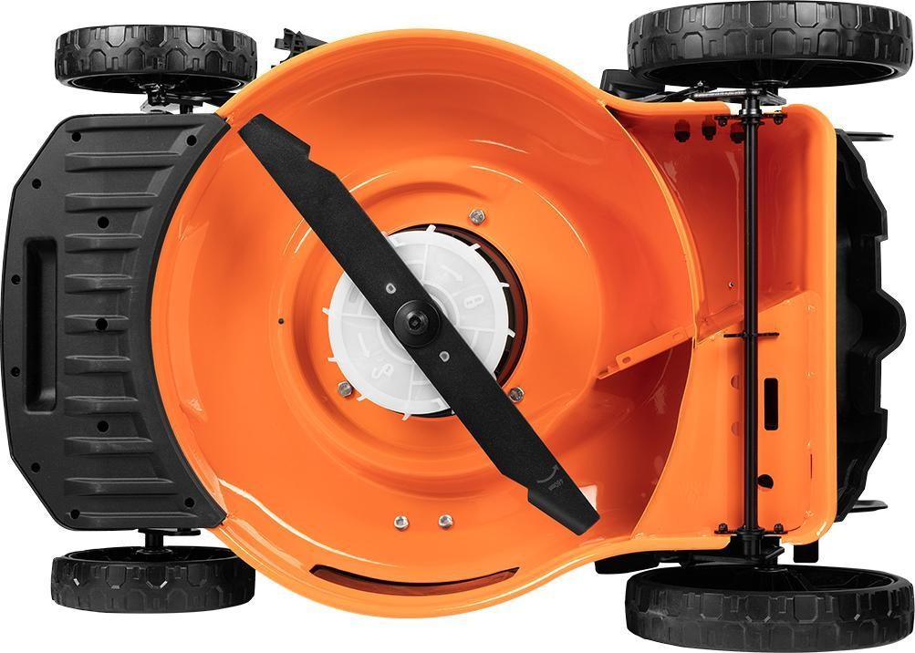Das Gerät ist mit einem leistungsstarken bürstenlosen Motor mit einer Spannung von 2x18 V ausgestattet. Es bietet eine Schnittbreite von 45 cm und eine integrierte 6-stufige Schnitthöhenverstellung, die im Bereich von 25 bis 75 mm liegt. Diese praktische Funktion ermöglicht eine bequeme Anpassung der Mähereigenschaften an die individuellen Bedürfnisse des Benutzers.