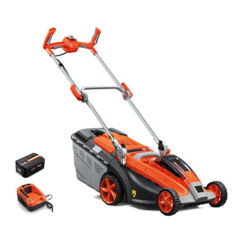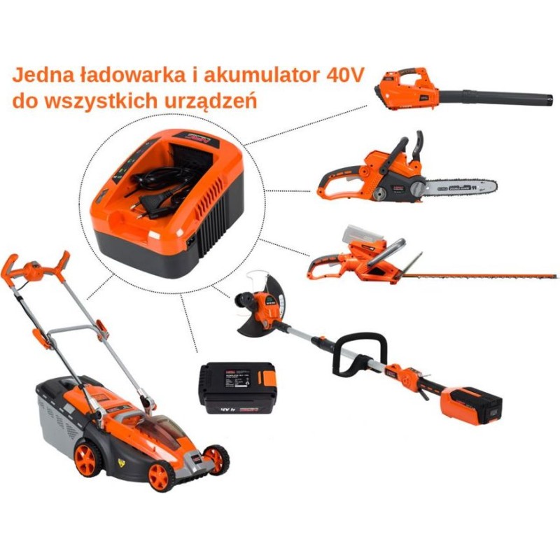 • Im Lieferumfang enthalten: 40-V-Akku, 4 Ah Li-Ion (Betriebsdauer ca. 30 Min.), Ladegerät