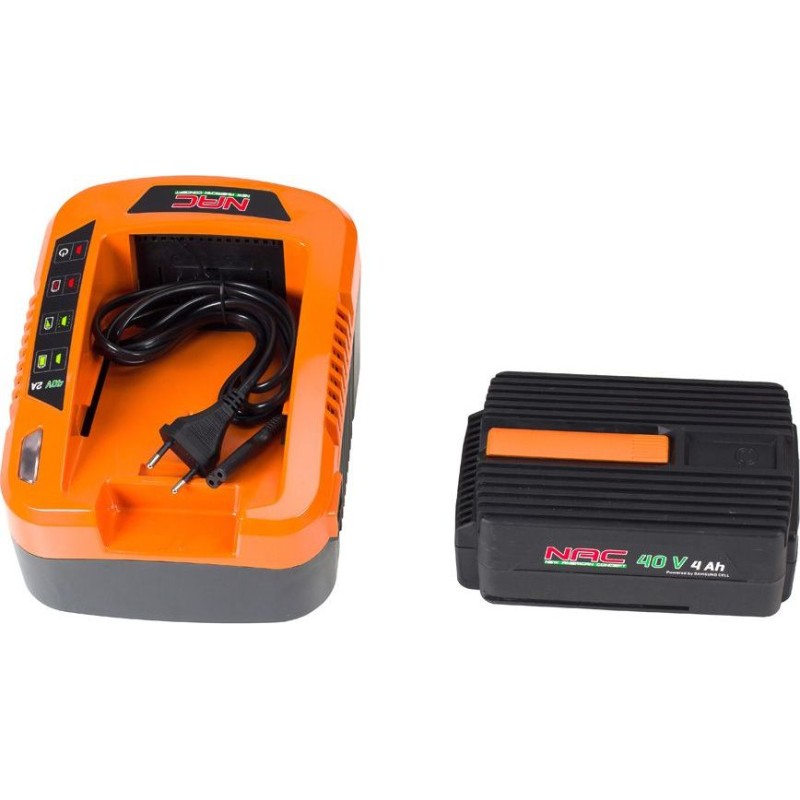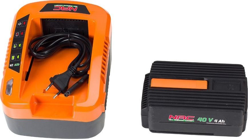 Der Akku-Rasenmäher NAC LB40-37-B40-NG ist mit einem robusten Induktionsmotor ausgestattet, der von einem Li-Ionen-Akku mit einer Spannung von 40 V und einer Kapazität von 4 Ah gespeist wird. Der Akku enthält Zellen der Marke SAMSUNG.