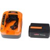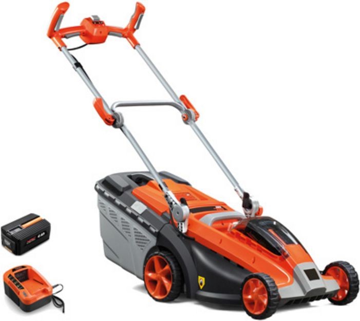 Im Lieferumfang enthalten: 40-V-Akku, 4 Ah Li-Ion (Betriebsdauer ca. 30 Min.) sowie Ladegerät.