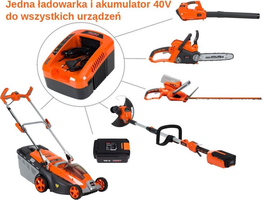 Das Gerät gehört zur Produktreihe: 40-V-AKKU-GARTENGERÄTE (ein Akku und ein Ladegerät für alle Geräte) – derselbe Akku kann in vielen Gartengeräten derselben Produktreihe verwendet werden.