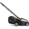 Der Rasenmäher ist mit einem vorderen Griff ausgestattet, der eine komfortable Führung des Geräts ermöglicht. Ein häufiges Problem bei solchen Geräten sind zu tief oder zu hoch angebrachte Griffe, die nach längerer Mähzeit zu erheblichen Beschwerden führen. Das Modell verfügt über einen klappbaren Lenker, der ein schnelles Zusammenklappen und die Lagerung des Geräts in einem kleineren Raum ermöglicht.