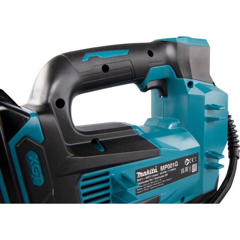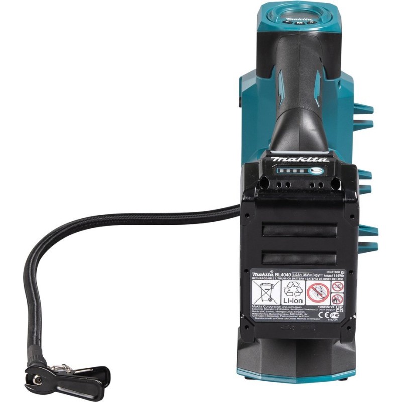 Makita MP001GZ. Förderleistung: 24 l/min, Maximaler Druck: 11,1 bar, Geräuschpegel: 22 dB. Produktfarbe: Schwarz, Blau, Geeignet für: Universell. Stromquelle: Akku, Betriebsspannung: 40 V, Akkutechnologie: Lithium-Ionen (Li-Ion). Produktbreite: 108 mm, Produkttiefe: 329 mm, Produkthöhe: 231 mm