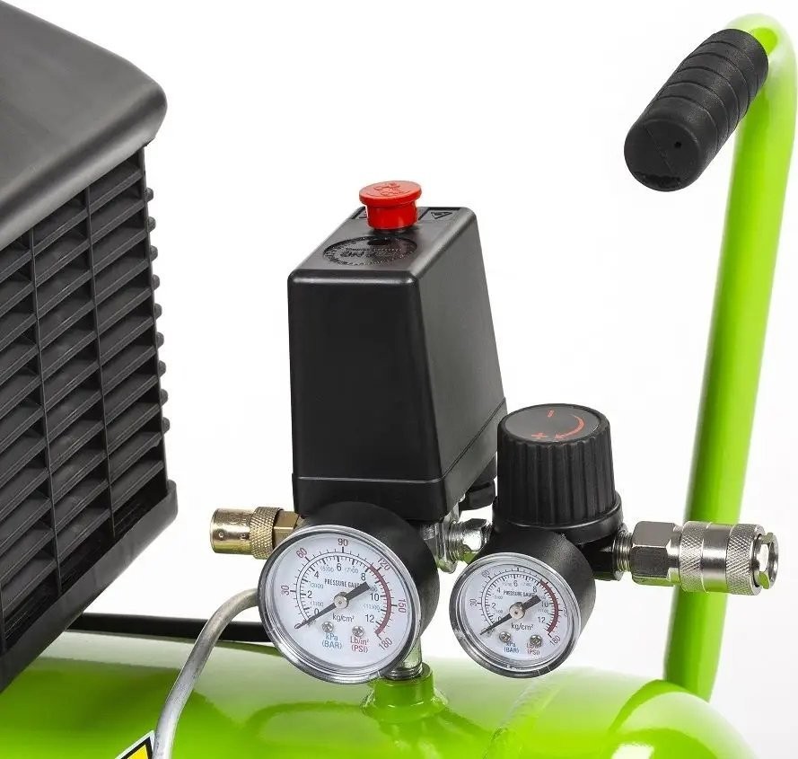 Die bequeme Nutzung von Werkzeugen und Geräten ist von größter Bedeutung, daher wurde der Kompressor Fieldmann FDAK 201552-E mit einem Tragegriff und großen Rollen ausgestattet. Dies ermöglicht ein einfaches und komfortables Umstellen des Geräts. Hinzu kommen Gummifüße, dank derer der Kompressor während des Betriebs nicht verrutscht, stabil steht und gleichzeitig den Boden nicht beschädigt.