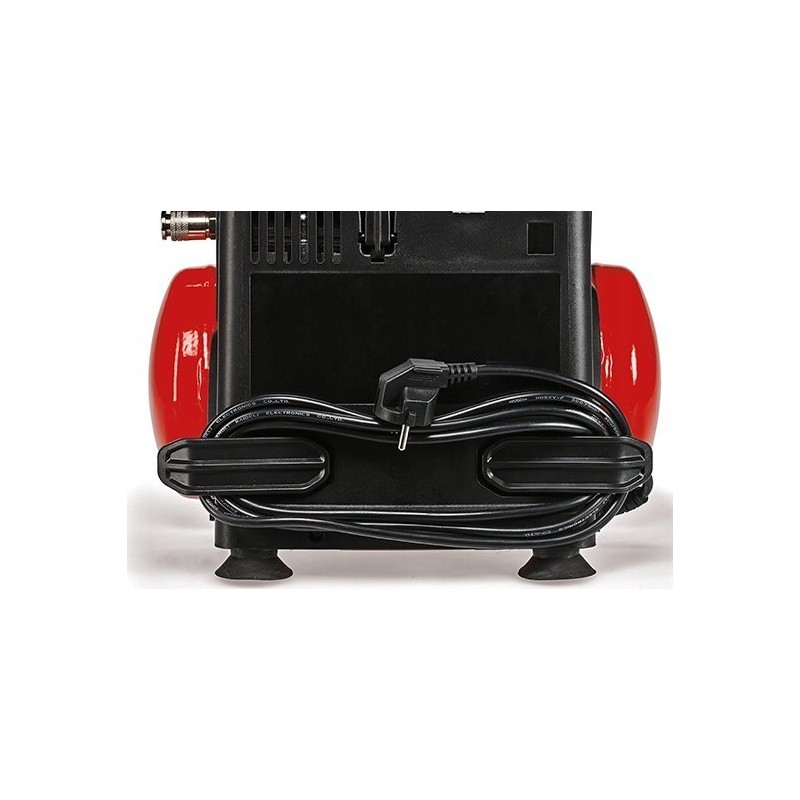 Der Kompressor ist mit einer praktischen Halterung zur übersichtlichen Aufbewahrung des Netzkabels ausgestattet.