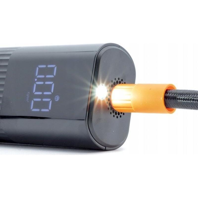 Leistungsstarker Kompressor mit präzisem elektronischem Manometer, 12-V-Betriebsspannung und automatischer Abschaltfunktion bei Erreichen des eingestellten Drucks.