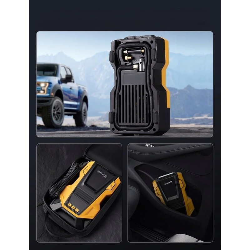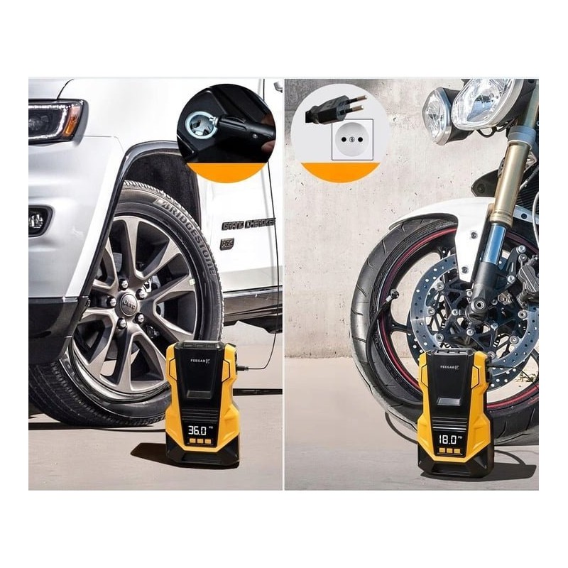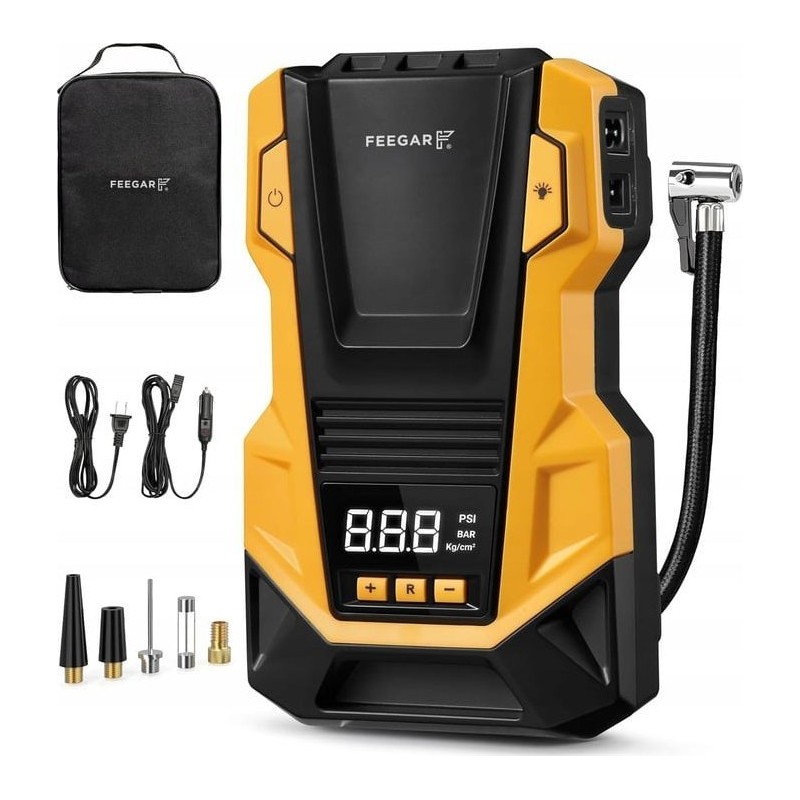 Feegar 12V/230V Autokompressor – tragbarer Kompressor für Reifen mit LED-Beleuchtung