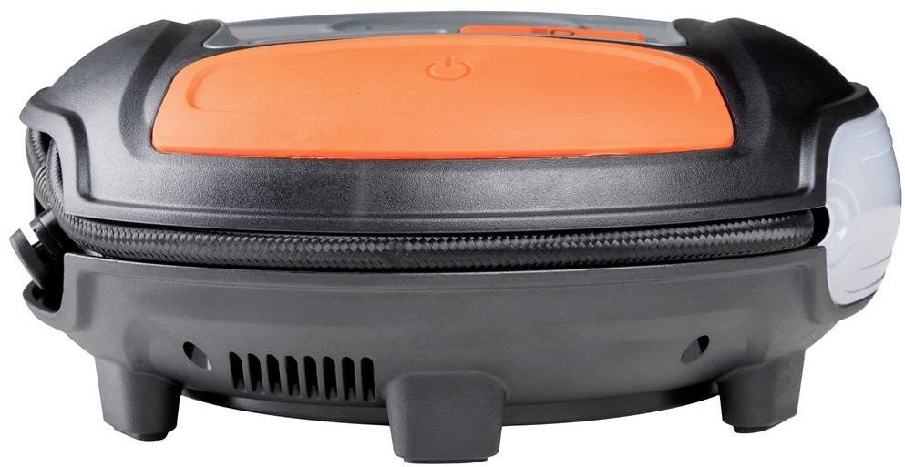 Der Kompressor ist mit einer LED-Leuchte ausgestattet, die die Arbeit bei Nacht oder bei schlechten Lichtverhältnissen erleichtert. So kann der Benutzer auch unter schwierigen Bedingungen seine Reifen schnell und effizient aufpumpen.