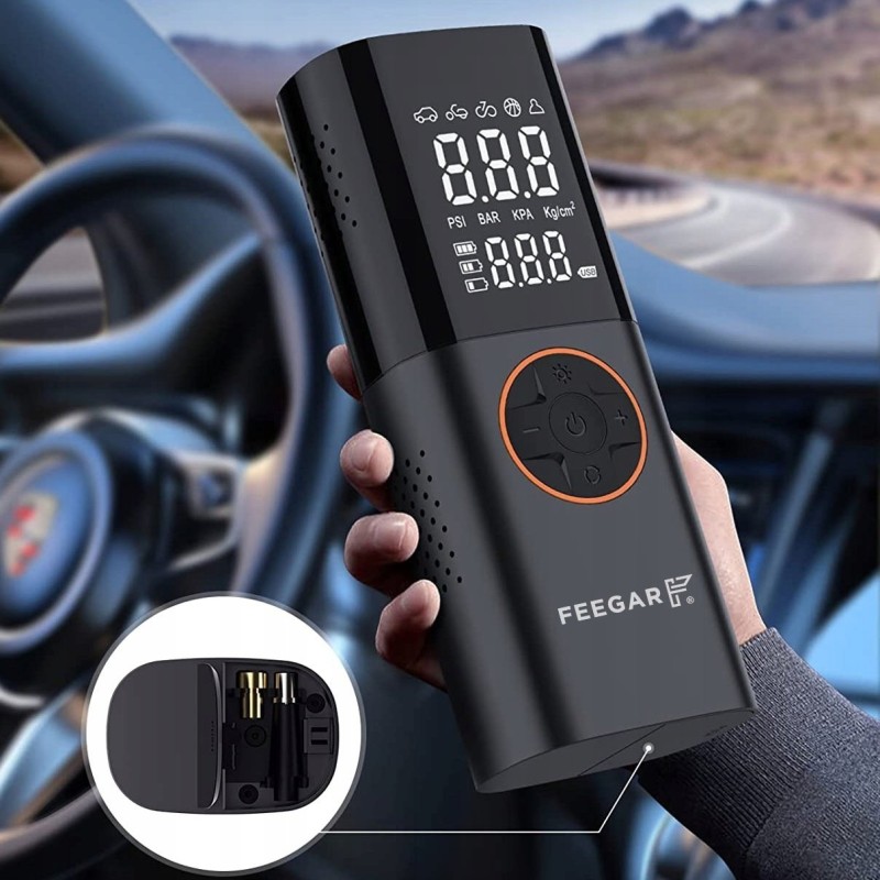 Die Expert-Pumpe wurde von einem Team von Spezialisten bei Feegar Polska entwickelt. Die kompakte Pumpe ist die ideale Lösung für zu Hause und die Werkstatt, bewährt sich aber auch auf Reisen. Das Feegar-Team hat sowohl auf die Funktionalität des Geräts als auch auf die Ästhetik der Endausführung geachtet. Es handelt sich um einen modernen, universellen Kompressor, mit dem du problemlos Bälle, Fahrradreifen, Autoreifen und verschiedene Arten von Matratzen aufpumpen kannst. Dank des großen 7800-mAh-Akkus und der Powerbank-Funktion kannst du auch dein Handy, Tablet oder deine Smartwatch aufladen.