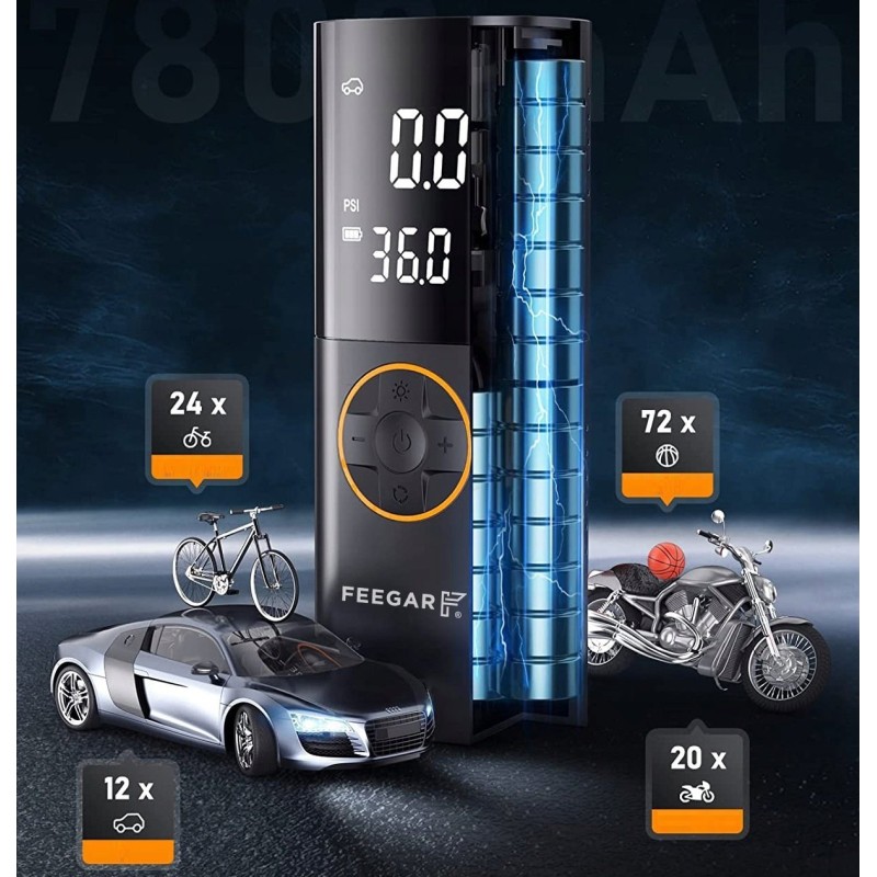 • Der Feegar Expert eignet sich ideal für: Radtouren, Camping, den Besuch im Schwimmbad, Urlaubsreisen, Bergwanderungen, aber auch hervorragend für den Einsatz zu Hause. Der große Akku mit 7800 mAh und die schnelle Lademöglichkeit gewährleisten eine lange und sichere Nutzung dieses fantastischen Kompressors.