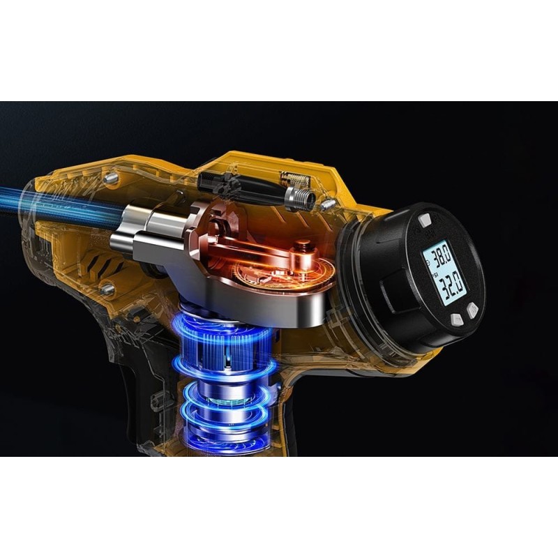 Die Möglichkeit, einen Reifen innerhalb von 4 Minuten vollständig aufzupumpen (0–36 PSI), spart Zeit. Die verstärkte Konstruktion und die hochwertigen Materialien gewährleisten eine lange Lebensdauer des Geräts.