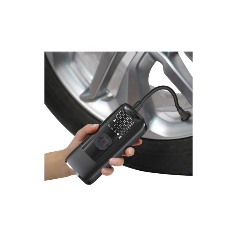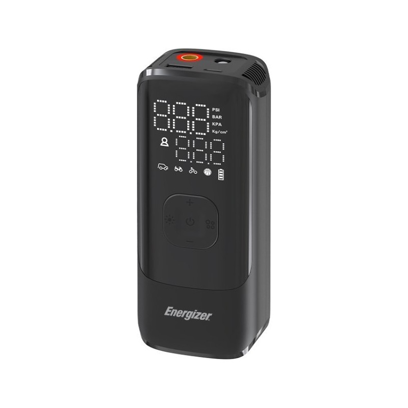 Der Energizer PAC4000 Luftkompressor bietet verschiedene Betriebsmodi, darunter 4 Einheiten zur Messung des Reifendrucks sowie 1 benutzerdefinierten Modus. Er unterstützt 3 Arten von Düsen und eignet sich ideal für einen Druck von bis zu 150 PSI zum Aufpumpen verschiedener Reifentypen. 5 Betriebsmodi (Auto/Fahrrad/Motorrad/Ball/Benutzerdefiniert) sorgen für eine einfache Bedienung, je nach eingestelltem Druck. Technische Daten Betriebsmodi: Auto, Fahrrad, Motorrad, Ball, Benutzerdefiniert Düsentypen: Unterstützt 3 Arten Maximaler Druck: Bis zu 150 PSI Display: Digitales LCD-Display zur Anzeige des aktuellen Drucks, des eingestellten Drucks und des ausgewählten Modus Automatische Abschaltung: Integrierte automatische Abschaltfunktion bei Erreichen des eingestellten Drucks Zusätzliche Funktionen: Powerbank-Funktion zum Aufladen von Geräten, LED-Leuchte für schlechte Lichtverhältnisse Kompaktes Design: Mobil und kompakt für den einfachen Transport überallhin Eigenschaften Verschiedene Betriebsmodi für unterschiedliche Anwendungen Automatische Abschaltfunktion für sicheres und zuverlässiges Aufpumpen Digitales LCD-Display für einfache Ablesbarkeit von Druck und Betriebsmodus Powerbank-Funktion zum Aufladen von Geräten unterwegs LEDs zur Beleuchtung bei schlechten Lichtverhältnissen