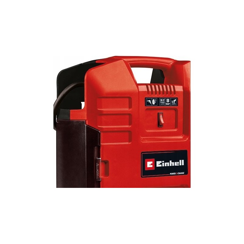 Der kabellose Kompressor Einhell TE-AC 36/8 Li OF Set-Solo gehört zur leistungsstarken Power X-Change-Familie.