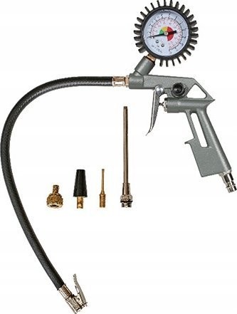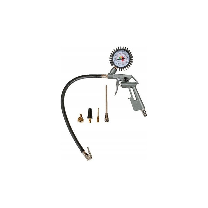 • Enthält einen Ausblasadapter, eine Reifendruckanzeige und ein 3-teiliges Adapterset