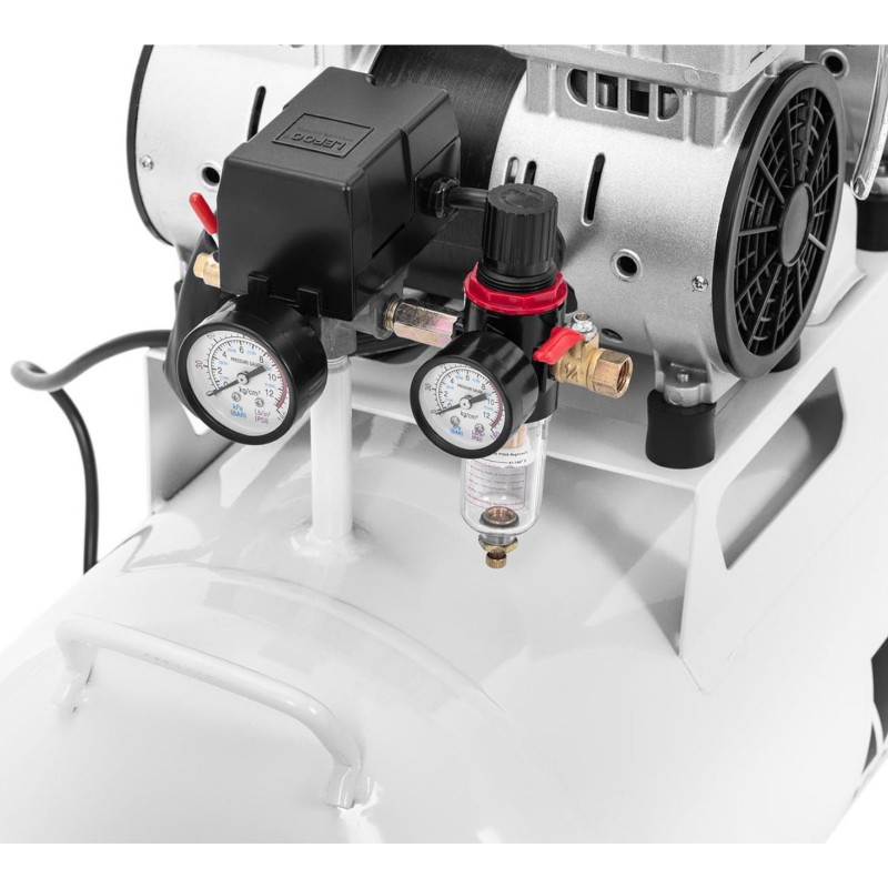 ölfreie Kompressor der Marke MSW eignet sich für jede Garage oder Werkstatt zum Aufpumpen von Fahrzeugreifen und zum Betrieb von Druckluftwerkzeugen. Der große Tank sorgt für eine kontinuierliche Versorgung mit Druckluft, deren Druck zuverlässig auf einem optimalen Niveau gehalten wird. Das bedeutet, dass er auch einen zuverlässigen Antrieb für Druckluftwerkzeuge gewährleistet. Der Kompressor ist mit einem Griff und großen Rädern ausgestattet, wodurch er leicht zu transportieren ist. Der Tank des Kompressors hat ein Fassungsvermögen von 65 l und ist in nur 110 s gefüllt . Das Gerät hält den Druck der Druckluft im Bereich von 4 bis 7 bar . Wird dieser Wert überschritten, schaltet sich der Kompressor ab. Die Ausgangsleistung des Geräts beträgt 3 x 750 W, die Drehzahl 1380 U/min . Der Geräuschpegel liegt bei nur 68 dB . Der Druck wird über zwei Manometer überwacht. Ein thermischer Überlastschutz sorgt für maximale Arbeitssicherheit.