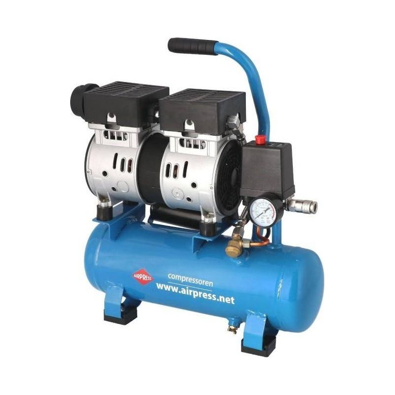 Der ölfreie, schallgedämpfte Kompressor L 6-105 mit einem 6-Liter-Druckluftbehälter eignet sich ideal für Arbeiten in der Höhe oder für Polsterreparaturen. Der kompakte Kompressor mit einer Leistung von 0,6 PS und einer Stromversorgung von 230 V ist direkt nach dem Auspacken einsatzbereit. Trotz seiner geringen Größe erzeugt er einen Druck von bis zu 8 bar. Sein Vorteil ist das schallgedämpfte Gehäuse (Silent), wodurch der Geräuschpegel des Kompressors nur 66 dB beträgt.