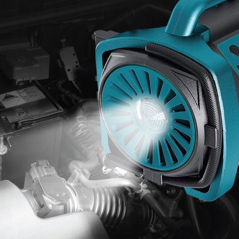 Die integrierte, helle Taschenlampe am Gehäuse ist nützlich, wenn der Arbeitsbereich im Dunkeln oder bei schlechten Lichtverhältnissen beleuchtet werden muss. Sie verfügt über einen Dauerlichtmodus und einen Blinkmodus